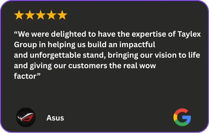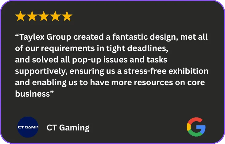 We specialize in end-to-end exhibition stands, live events, and brand experiences. Our typical projects range from £40,000 to £150,000+, and we work with both corporate brands and creative agencies across the UK, Europe, and the Middle East.